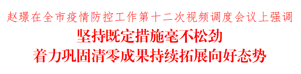 趙璟在聽取匯報后指出,本輪疫情發(fā)生以來,全市上下爭分奪秒、以快制快,取得了社會面清零的階段性成效,探索了不少行之有效的經(jīng)驗(yàn)做法,但鞏固成果、防止反彈任務(wù)依然十分艱巨。要把疫情防控作為考驗(yàn)干部能不能、行不行、硬不硬的重要標(biāo)尺,始終保持清醒頭腦,把嚴(yán)防嚴(yán)控各項(xiàng)措施不折不扣落實(shí)到位,堅(jiān)決打贏疫情防控殲滅戰(zhàn),盡早恢復(fù)正常生產(chǎn)生活秩序。