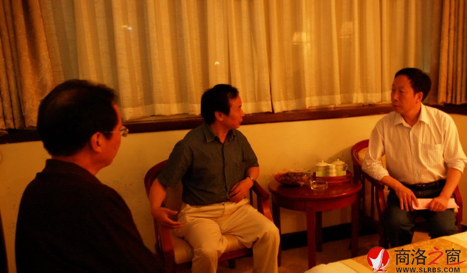 26日晚商洛日報社社長何鄧、總編輯劉少鴻與中國地市報工作委員會秘書長呂道寧討論會議議程及安排情況