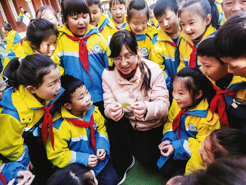 朱云芳教學(xué)生們觀察描寫樹葉