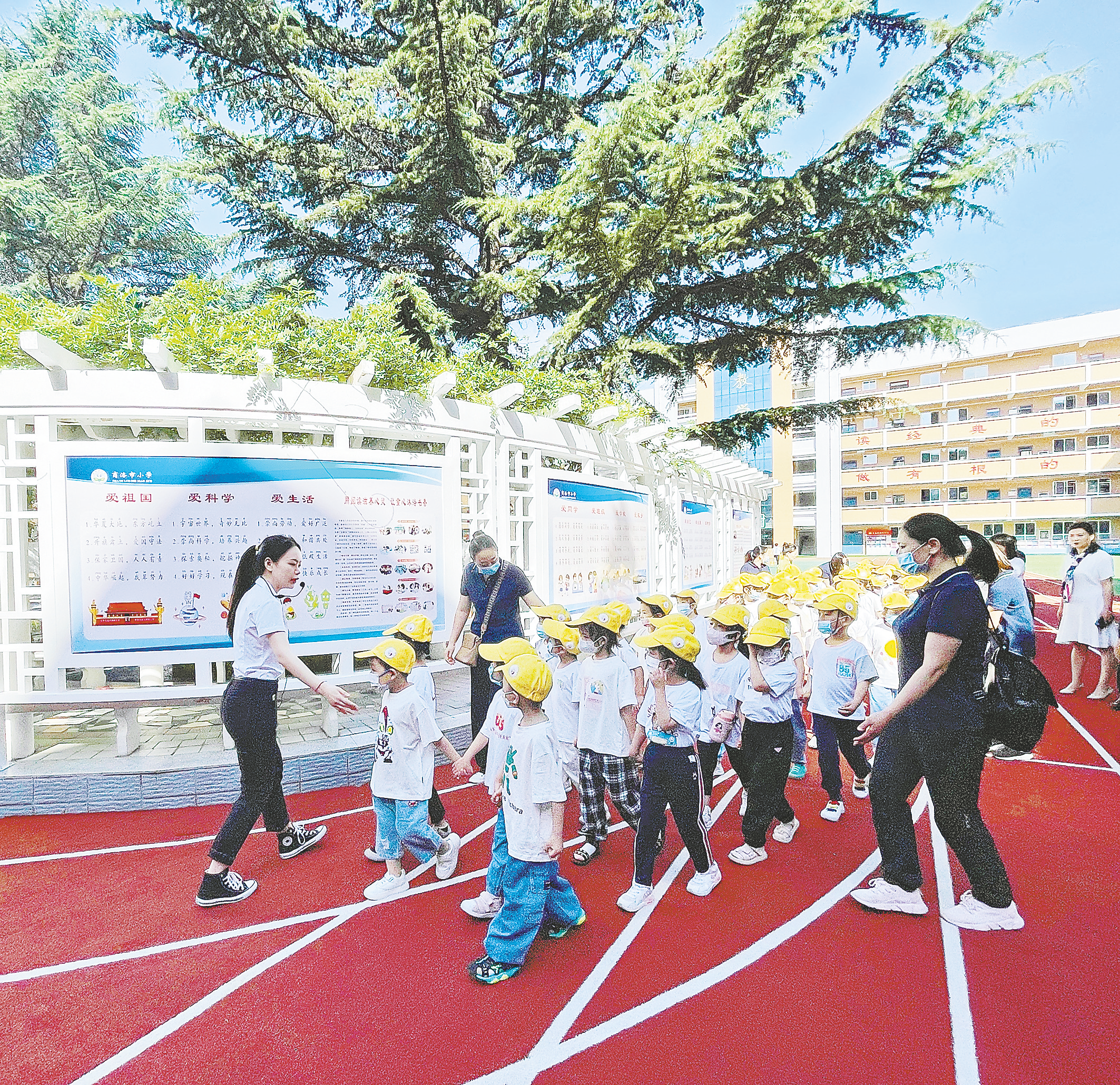 在商洛市小學的校園里,綠意正濃,朵朵花兒散發(fā)著清香,朗朗的讀書聲在耳邊回蕩……一切都吸引著孩子們的注意力。