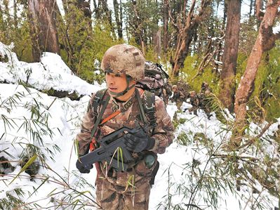團(tuán)長侯云走在隊(duì)伍的最前頭。任現(xiàn)職前,他曾兩次帶隊(duì)參加國際軍事比賽,征服過歐洲最高峰厄爾普魯士山,對登山很有經(jīng)驗(yàn)。當(dāng)團(tuán)長后,每次參加武裝巡邏,他都在前面開路。