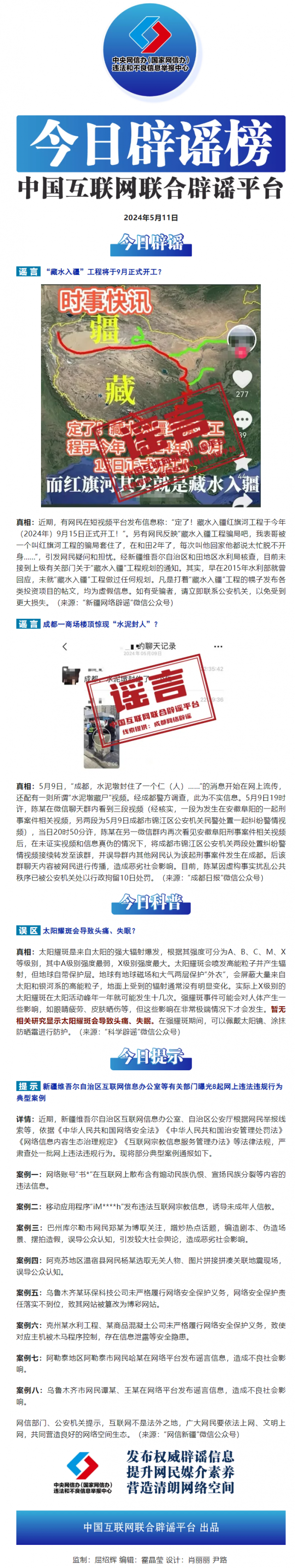 今日辟謠(2024年5月11日)