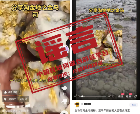 辟 謠  “金馬河現(xiàn)800克狗頭金”視頻系拼接剪輯
