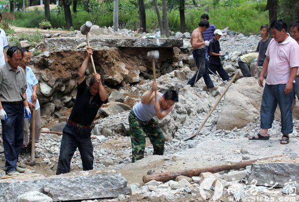 駕鹿干部群眾搶修公路">