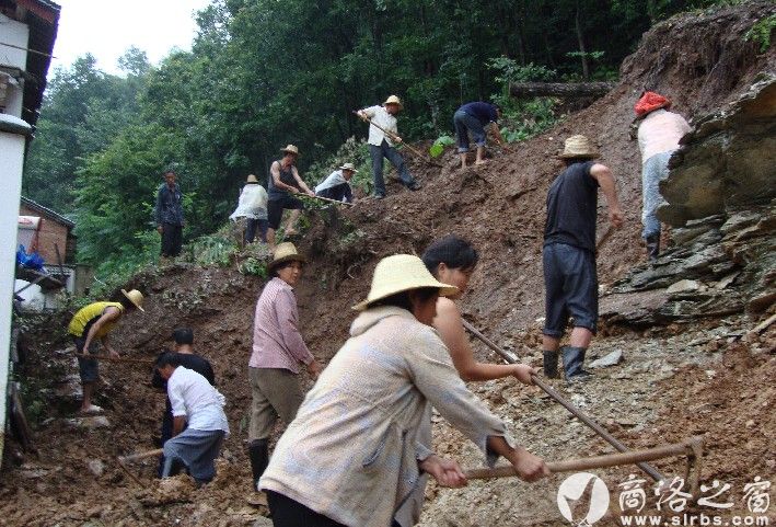 本網(wǎng)訊 7月8—18日,商南縣趙川鎮(zhèn)連遭兩次特大暴雨襲擊,造成大面積經(jīng)濟(jì)林沖毀、電力通訊中斷、鄉(xiāng)村公路、橋涵、河堤、自來水管道沖毀嚴(yán)重。山體滑坡330處,威脅農(nóng)戶16戶52人。圖為趙川鎮(zhèn)前川村前坡組群眾李德明房后山體滑坡3000多立方,危及其一家5口人的生命財產(chǎn)安全。鎮(zhèn)、村、組干部及時組織群眾冒雨清除滑坡體。(周銀祥劉芳攝)