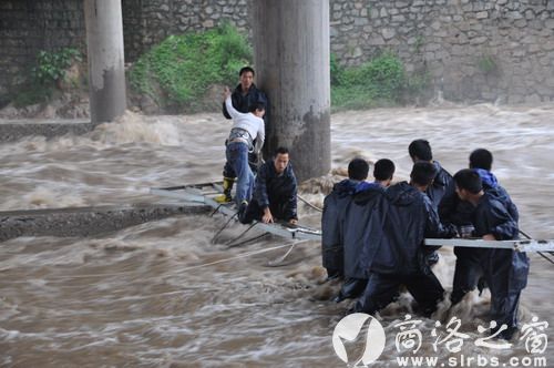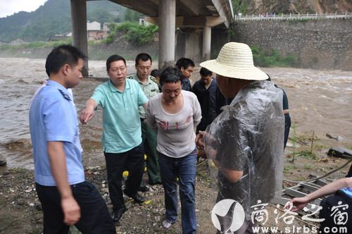 24日6時50分,柞水縣公安局110接到群眾報警:一女子被洪水圍困在柞水縣干佑大橋橋墩橫梁上,十分緊急,請求救援。險情就是命令,接警后,110迅速將警情下達(dá)到干佑派出所以及巡特警大隊。受令民警迅速趕往出事地點,只見一名女子趴在河中心橋墩橫梁上,橋墩四周全被淹沒,女子情緒激動,幾次險些跌落水中,而此時河水還在上漲,情況非常危急。由于沒有專業(yè)的救援工具,現(xiàn)場民警無法實施有效救援。公安局立即指令政委王瑤帶領(lǐng)機(jī)關(guān)值班領(lǐng)導(dǎo)和消防應(yīng)急救援大隊11名消防戰(zhàn)士、巡特警大隊10名民警,攜帶保險繩、長纜繩、伸縮梯等救援器材,火速趕到事發(fā)地開展?fàn)I救工作。干警們下到水中,在洪水中艱難前行,在距離女子十余米處將用于營救的伸縮梯一端搭到橋墩橫梁上,另一端由站在淺水區(qū)的多名民警雙手托住,舉在水面上。兩名消防戰(zhàn)士身系覽繩沿梯子爬到橋墩橫梁上,用長纜繩系住女子腰部,1名戰(zhàn)士護(hù)送女子從梯子往岸邊方向爬行,行進(jìn)約兩米時,伸縮梯滑落,婦女連同救援戰(zhàn)士落入洪水之中,周圍的群眾同時發(fā)出驚呼,淺水區(qū)救援人員奮不顧身的迅速牽拉纜繩,將落水女子和戰(zhàn)士拉到岸邊,營救人員迅速將該女子抬上岸邊,立即送縣人民醫(yī)院搶救。經(jīng)醫(yī)院檢查,該女子身體狀況良好,未受到損傷。民警一邊聯(lián)系其親屬,一邊為該女子找來干衣服,購買了新鞋襪,并安排女民警對其進(jìn)行照看。