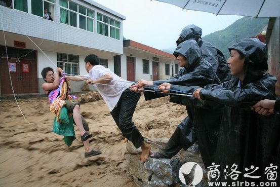本網訊 (文/圖 董維剛)7月23日凌晨3時,一場突如其來的山洪襲擊山陽縣長溝鎮(zhèn)街道,17名村民和鎮(zhèn)屬單位職工從睡夢中被驚醒,倉皇逃到附近兩座樓房上避險。天亮后,小鎮(zhèn)上已是一片汪洋,被洪水吞噬的平房陸續(xù)坍塌,這兩座樓房也變成了“孤島”,隨時可能被沖垮,困在樓上的災民大聲呼救。清晨6點,三官殿村支書陳世寬和鎮(zhèn)上20多黨政干部一起投入搶險,經過3個多小時緊急救援,被困人員及時脫險。