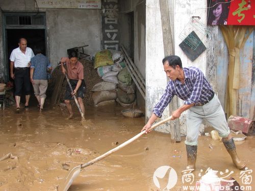 7月24日凌晨4時(shí)許,風(fēng)聲雨聲和怒吼的河水聲將老賈和妻子陳來寅相繼警醒。他剛起身下床,就感到屋內(nèi)到處是水,連忙呼喊著將3歲的孫女從水中抱起,當(dāng)他們沖出房門時(shí),這才發(fā)現(xiàn)門前摞著的四五千斤天麻、木耳、山萸等中藥材,被沖得七零八落。周圍的商戶都來不及穿衣服,一個(gè)個(gè)驚叫著往出逃奔。等到天亮后,叫來親朋好友,好不容易將冰箱、洗衣機(jī)等家電轉(zhuǎn)移到房后公路上,沒想到屋后又發(fā)大水,轉(zhuǎn)眼間將家電全都沖入了泥潭之中。短短幾小時(shí),他家就損失了十多萬元。就連妻弟停在他家門口的小車也被卷入了泥漿中。在山陽縣城關(guān)鎮(zhèn)甘溝口遭受這樣巨大損失的商戶就有14戶。