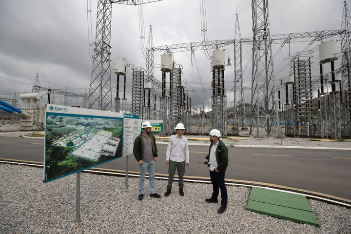 2022年9月30日,在巴西里約熱內(nèi)盧美麗山特高壓輸電二期項(xiàng)目里約換流站,國(guó)網(wǎng)巴控公司換流站運(yùn)維主管(中)和巴方人員交談。新華社記者 王天聰 攝