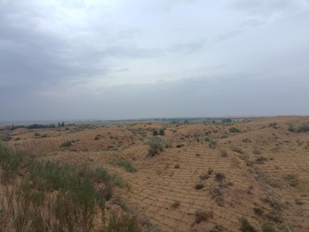 寧夏吳忠市鹽池縣和內蒙古鄂爾多斯市鄂托克前旗交界處的流動沙丘,今年剛剛完成治理。(孫果攝)