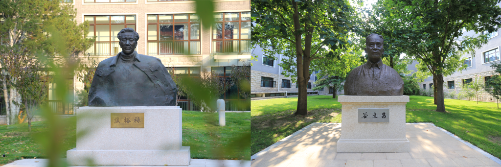 △左圖為中央黨校(國(guó)家行政學(xué)院)校園內(nèi)的焦裕祿雕塑,右圖為校園內(nèi)的谷文昌雕塑。