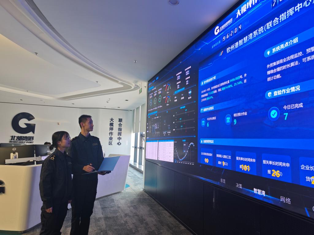 在上線“智慧灣”系統(tǒng)基礎(chǔ)上,海關(guān)與港口物流、報關(guān)、鐵路等各方打破數(shù)據(jù)信息壁壘,共同破解通關(guān)堵點難點問題。2024年,欽州港口岸總體集疏運效率提升約25%。