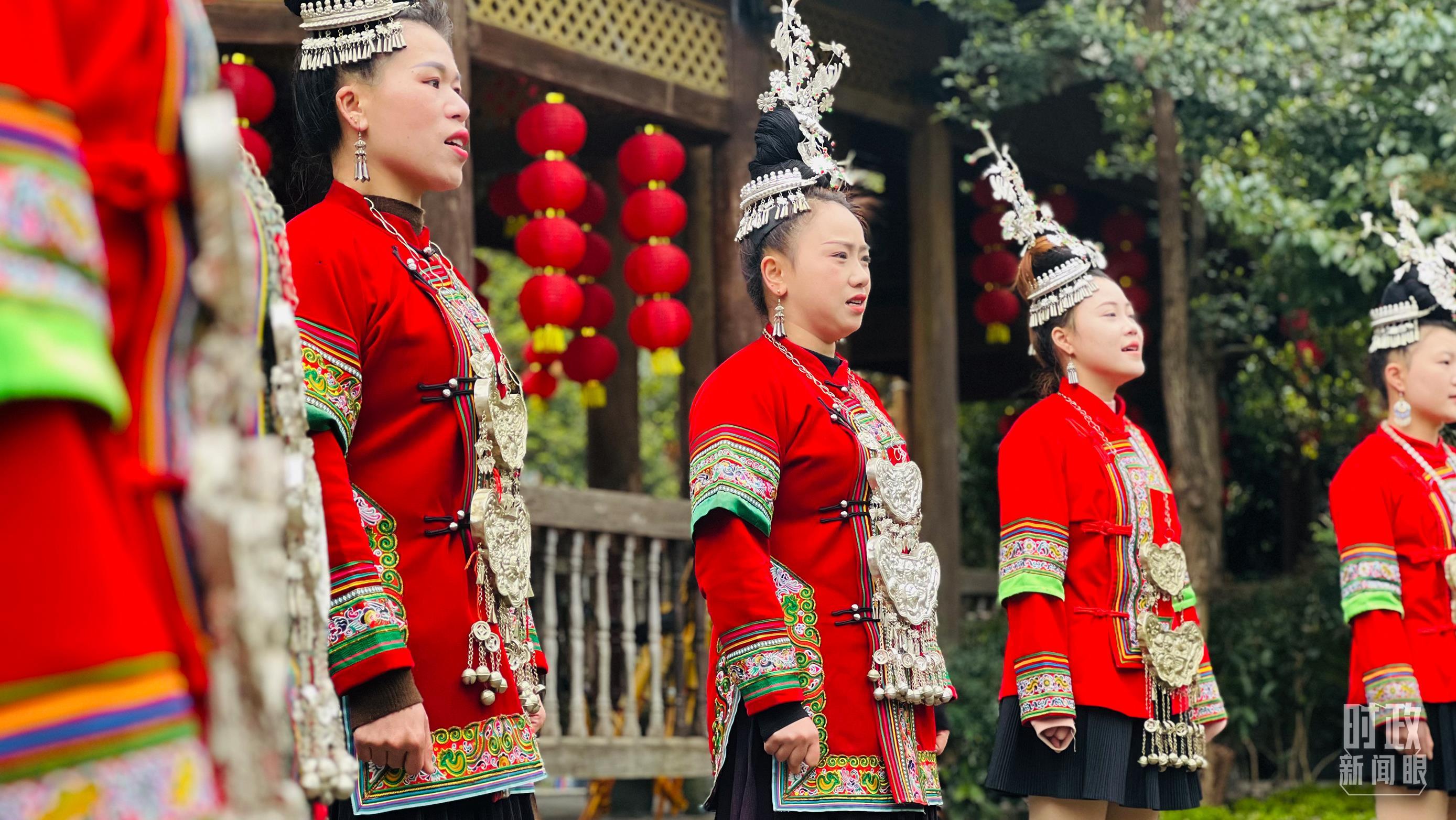 △2018年春晚的黔東南分會(huì)場(chǎng),就設(shè)在肇興侗寨。圖為侗族大歌表演。(總臺(tái)央視記者李煒拍攝)