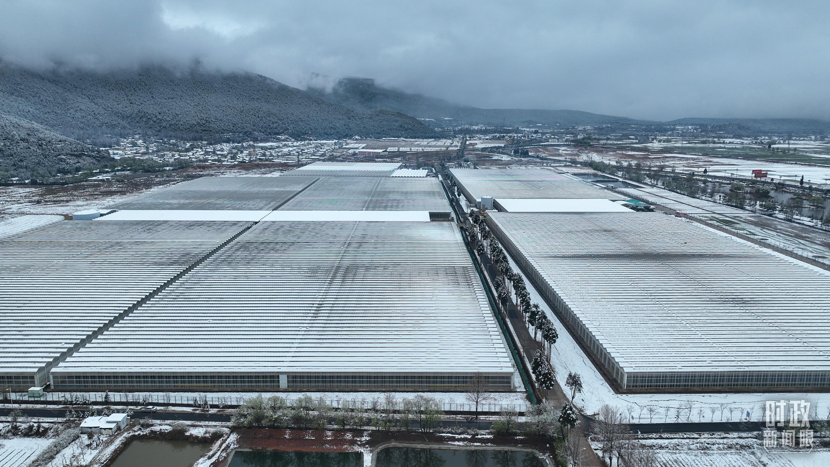 △銀裝素裹的麗江現(xiàn)代花卉產(chǎn)業(yè)園。(總臺(tái)央視記者郭鴻拍攝)
