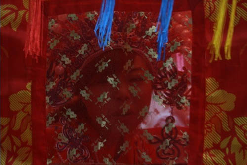 新娘不時(shí)向外觀看,想知道別人怎么看待。