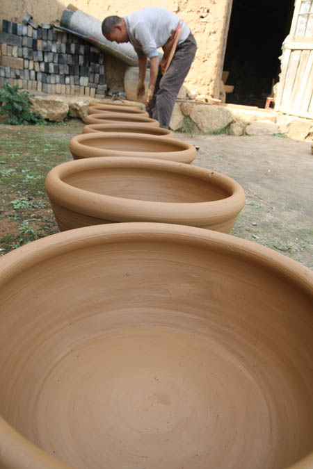 郝悶長(zhǎng)告訴記者,每天能做10個(gè)盆子,每個(gè)盆子能賣7、8元,現(xiàn)在多是外地人上門收購,本地人買的并不多。以前生意還好,瓦罐、陶盆、砂鍋等都能做,隨著社會(huì)的發(fā)展,現(xiàn)在搪瓷、玻璃、不銹鋼等器具慢慢將陶瓷代替。如今大都做的是陶盆,用作孝子盆。
