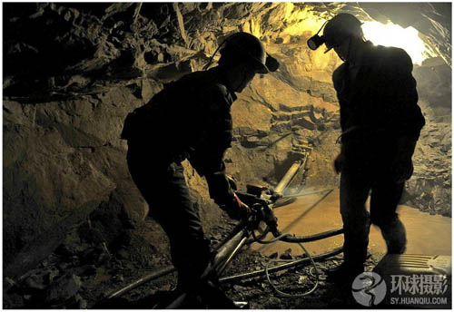 礦工在井底鉆眼準(zhǔn)備裝入炸藥