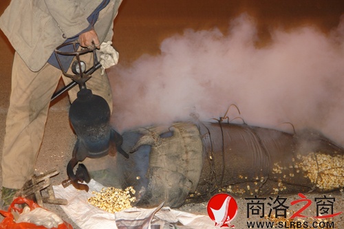 李師傅說,他炸花的器什是祖輩傳下來的,爺爺爆米花走遍了商洛各縣,一個風(fēng)箱一個爆米爐,他們那個年代走到那兒生意都很好,沒錢的人家一碗糊湯也能換來。用木柴將火生起,玉米和糖料攪勻后倒進(jìn)外形似獎杯的爆米爐里,不停的旋轉(zhuǎn),幾分鐘看爐上的溫度表停止轉(zhuǎn)動,就能出鍋了。李傅將鐵爐放入一只麻袋,一拉,"砰"響,黃燦燦米花就好了。李師傅將他的爆米比作做人,一粒壞的玉米會毀掉整個爐內(nèi)米花的香味,賠掉生意事小,人要是參了假賠掉的將不止"人"的生意。