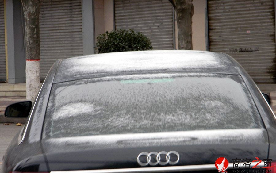 12月15日,拍攝于商州北新街西段,昨夜的小雪給汽車鋪上了一層薄薄的白雪。