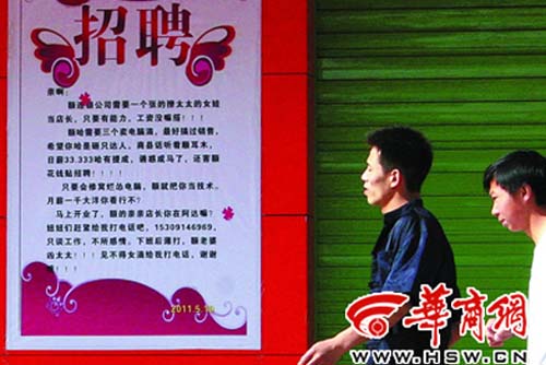 小賈說(shuō),貼出廣告的第一天,就接了30多個(gè)電話,有十多個(gè)應(yīng)聘者。(華商網(wǎng))