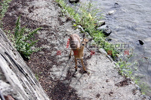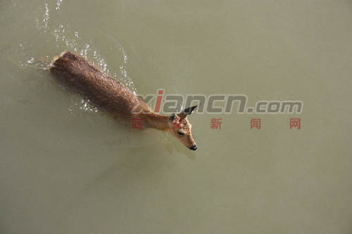 隨后,記者聞?dòng)崄?lái)到現(xiàn)場(chǎng),只見(jiàn)對(duì)岸有一只似鹿的動(dòng)物。它正在干佑河橡膠壩邊上東張西望。當(dāng)一群眾伸手一指:“看,在那里!”這只似鹿的動(dòng)物立即跳進(jìn)水面,游到壩體又轉(zhuǎn)回來(lái)向上游游去,見(jiàn)不能越過(guò)上面的壩,只好回頭再向下邊游。游到迎春路橡膠壩時(shí),它在壩體上站住,但由于太滑,又有水流沖擊,一下落入壩下的水面。在眾多群眾的觀望中,它游到交通路蓄水壩時(shí)又被水沖下去,眼看就要到淺水區(qū),將要脫離危險(xiǎn)時(shí),它突然腦袋一沉,跌入水中,身體靠在一個(gè)樹(shù)蔸上。