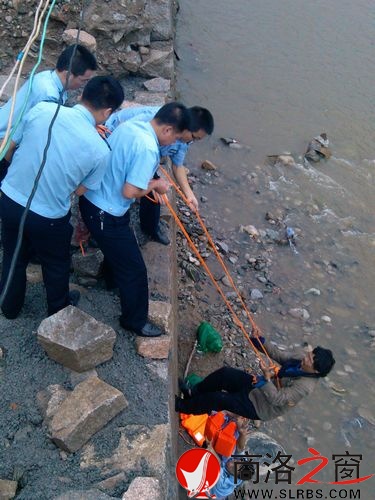 9月1日7時(shí)26分,柞水縣巡特警大隊(duì)接到縣局指揮中心處警指令:絲織廠大橋橋墩橫梁上有一名男子被洪水圍困,立即出警救援。巡特警大隊(duì)大隊(duì)長(zhǎng)樊德鋒帶領(lǐng)七民警到達(dá)現(xiàn)場(chǎng),發(fā)現(xiàn)一男子被洪水困在大橋下的橋墩橫梁上。連日來(lái),由于持續(xù)陰雨,河水已快淹至橋墩橫梁,而在橋墩橫梁上躲避洪水的男子由于體力不支,已搖搖欲墜。樊德鋒立即組織民警攜帶保險(xiǎn)帶、長(zhǎng)纜繩、救生衣等救援器材開(kāi)展?fàn)I救,兩名突擊隊(duì)員強(qiáng)行渡河,將救生衣穿到被困男子身上,并綁上安全繩索,協(xié)同岸上民警,最終只用了10多分鐘就將該男子成功救起。
