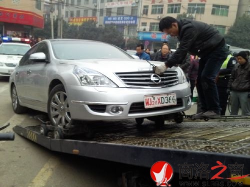 本網(wǎng)訊 (記者 李敏)商洛市區(qū)文衛(wèi)路轉(zhuǎn)盤一直是禁止停車的,但是部分車輛仍亂停亂放,尤其是小學放學時段更為嚴重。圖為十二月十一日十一點左右,一亂停車輛被交警部門強行拖離。交警隊工作人員提醒各位車主要嚴格遵守交通秩序,切勿亂停亂放。