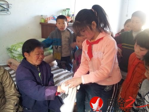 3月5日下午,商州區(qū)劉灣辦事處任塬小學(xué)的學(xué)生在敬老院為趙淑芳老人擦洗。(見習(xí)記者 李亮 肖云 攝)