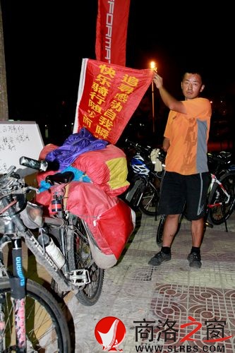 商洛日?qǐng)?bào)訊(記者 李敏 楊鑫)世上事,只要你愿做,就沒(méi)有做不到的。今年4月25日,開(kāi)始從家鄉(xiāng)安徽黃山出發(fā),途經(jīng)安徽合肥、江西景德鎮(zhèn)、河南、山西五臺(tái),從太原去壺口瀑布,再到華山。6月20日晚,經(jīng)西安騎行至商州城區(qū)的35歲安徽殘疾小伙程志剛在市區(qū)望江樓吸引了不少市民的注意。