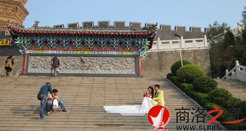 商洛日報訊(記者 李敏)10月3日,國慶假期期間,山陽縣蒼龍山森林公園吸引了不少游客前去游玩,也吸引了不少新婚夫妻前去拍攝婚紗照。圖為一對新婚夫妻正在蒼龍山豐陽塔下拍攝婚紗照。