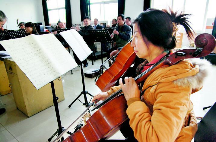 據(jù)林團長介紹,每周星期五,團員們都會拿著自己的樂器來這里,利用一天時間,聚在一起進行訓練。在排練現(xiàn)場,記者看到,大大小小的樂器有十多種,小提琴、大提琴、黑管、長笛、雙簧管、小號、長號、板胡、二胡等一應俱全。樂團主打以管弦樂為主,選擇的都是中外比較流行的經(jīng)典樂曲,目前他們主要排練的是大家熟知的曲目,如《春天的故事》《北京喜訊到邊寨》《白毛女交響組曲》《秦腔牌子曲》《鄉(xiāng)音》《好日子》等。