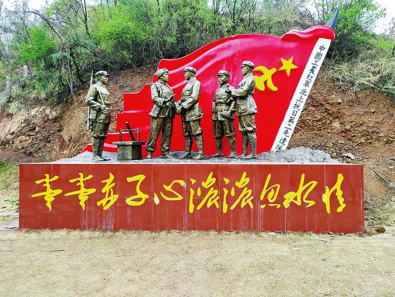 高耀鎮(zhèn)龍河村鐵鎖關(guān)的紅二十五軍紀(jì)念雕像