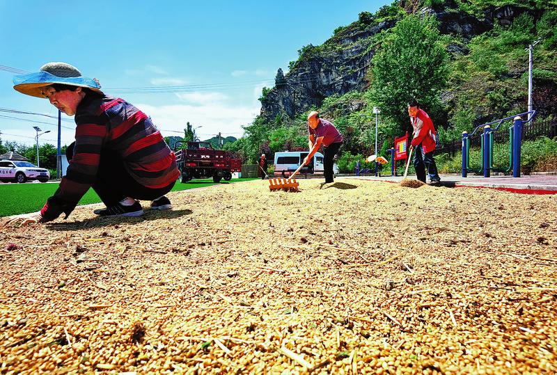 晾曬剛剛收獲的小麥