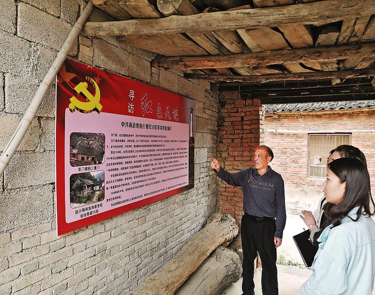 兩位老紅軍曾經(jīng)在這里駐扎了很長時間,他們的記憶很清晰,對這一帶比較了解,他們給趙尚平提了一點建議:這個地方應(yīng)該通過政府掛個牌子加以保護,由政府來監(jiān)督管理這一帶的革命舊址。于是,2014年,花門樓的展板掛了起來,這個地方也就順理成章地成為革命后輩探訪紅色印記的必經(jīng)之地。