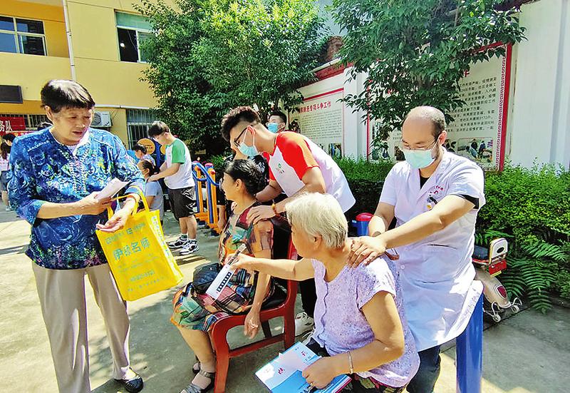 7月14日,陜西中醫(yī)藥大學(xué)“醫(yī)路向民”愛心醫(yī)療志愿服務(wù)隊(duì)冒著酷暑深入商州區(qū)城關(guān)街辦四皓社區(qū)開展專家義診。