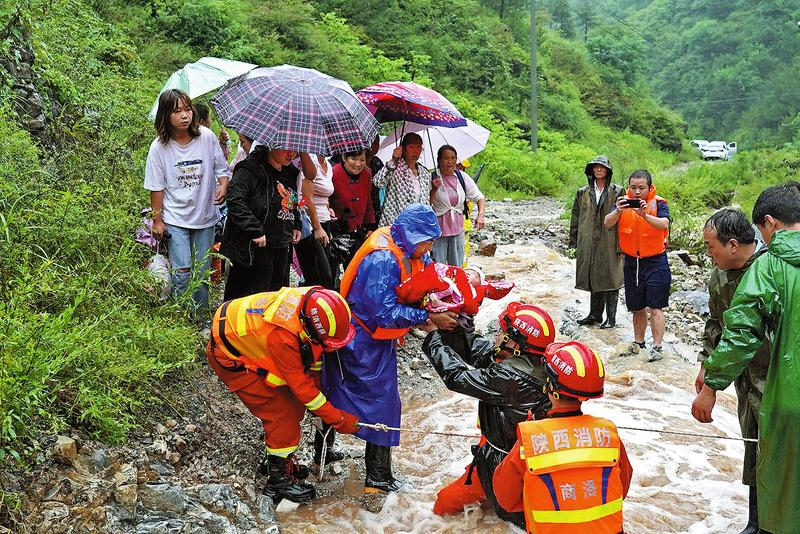 接到報警后,市消防救援支隊立即調(diào)派轄區(qū)大隊分成3組,分別前往受災嚴重地區(qū)進行搜索救援。同時,支隊全勤指揮部調(diào)派特勤救援力量前往洛南支援。由于雨勢較大,道路損毀嚴重,通信中斷,救援力量行進過程中受到阻礙。23日清晨,多支救援力量集結,分別向受災嚴重地區(qū)進發(fā)。