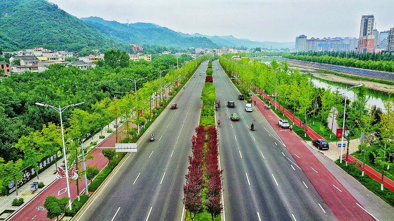 商鞅大道是我市近年來著力打造的城市主干道,也是一條城市景觀大道、生態(tài)大道。它暢通了中心城區(qū)交通主動脈,加快了南秦新區(qū)和丹南片區(qū)開發(fā)建設(shè)。商鞅大道全長7.9公里,總寬43米。大道兩側(cè)栽植銀杏、大葉女貞、七葉樹、桂花等喬木3725株,綠化面積25870.2平方米,綠地率20%。四季色彩分明,八月桂花飄香,商鞅大道已經(jīng)成為名副其實的生態(tài)綠廊。圖為8月19日,記者航拍的商鞅大道西段。(記者 楊鑫 攝)
