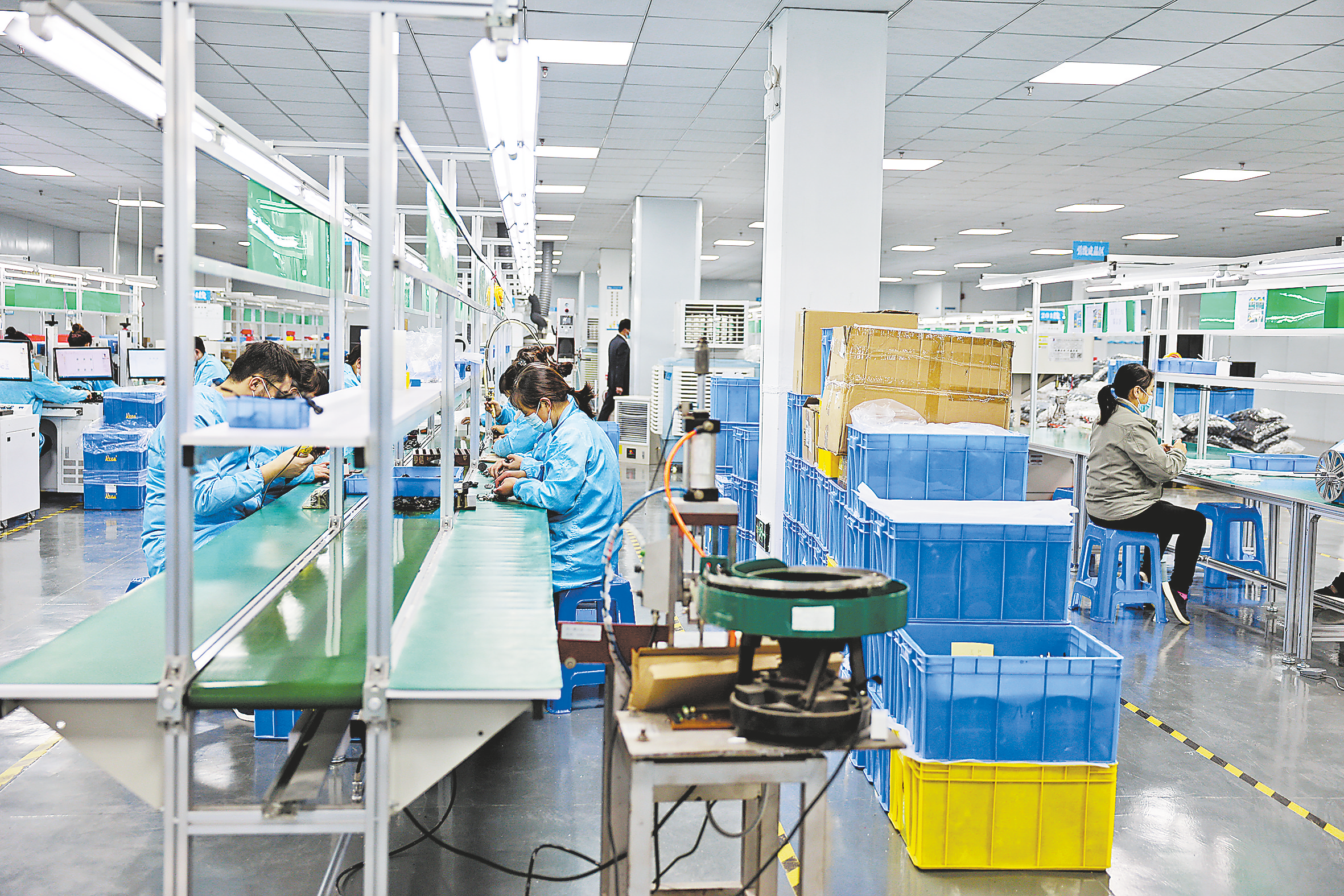 山陽縣5G設備電源適配器生產車間里,工人正在作業(yè)。