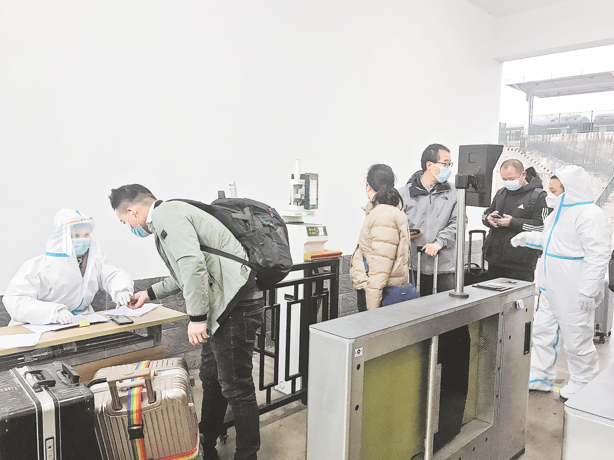 據(jù)商州區(qū)沙河子鎮(zhèn)鎮(zhèn)長楊利國介紹,商洛站現(xiàn)在每天大約有11趟列車經(jīng)過,出站旅客多則400多人,少則200多人。春運期間,返鄉(xiāng)人員還會增加,經(jīng)過商洛站的火車車次也會根據(jù)實際情況適量增加。他們會對于低風險地區(qū)歸來的旅客,進行查驗健康碼、行程碼以及48小時核酸陰性證明。對國內(nèi)中、高風險地區(qū)來商返商人員,原則上一律勸返,但也會根據(jù)實際對部分人員轉(zhuǎn)運至集中隔離點,落實14天集中隔離和7天健康監(jiān)測。