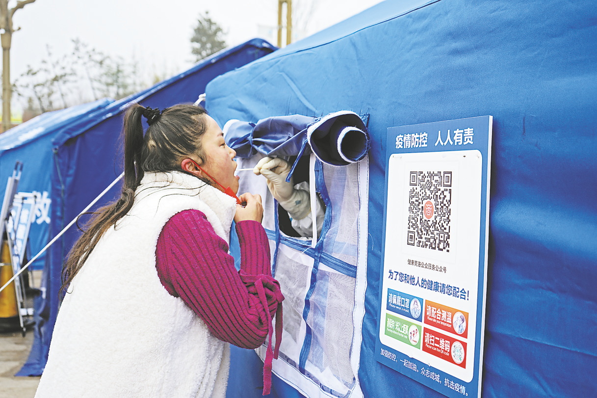 1月6日,寒風蕭瑟。在商洛北高速路口,執(zhí)勤隊伍不懼嚴寒,測溫、掃碼,依次排查過往車輛。“請戴好口罩,配合測溫,出示健康碼、行程碼。”工作人員把好關(guān)口,嚴防外輸?shù)耐瑫r保障交通有序運行,全力做好疫情防控工作。此時,幾位旅客正在帳篷前間隔一米排隊掃碼,等待做核酸檢測。醫(yī)護人員介紹,此帳篷為商州區(qū)人民醫(yī)院核酸檢測點,從7點至22點都有工作人員值班,核酸樣本由救護車點對點運送至醫(yī)院檢測,讓群眾便捷、快速取得核酸檢測結(jié)果。