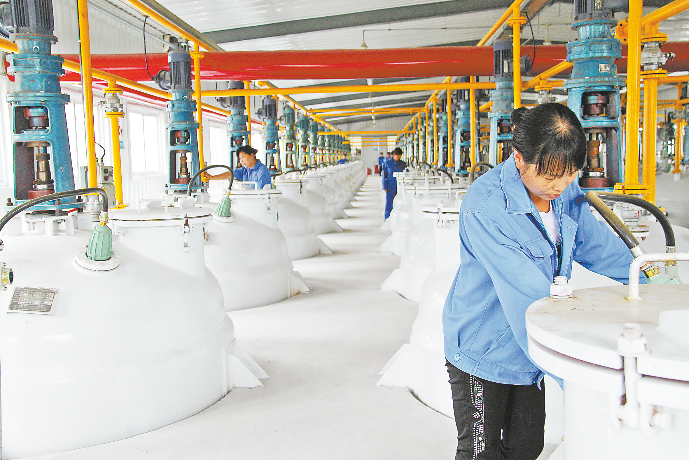 工人在皂素提取結(jié)晶車間忙碌