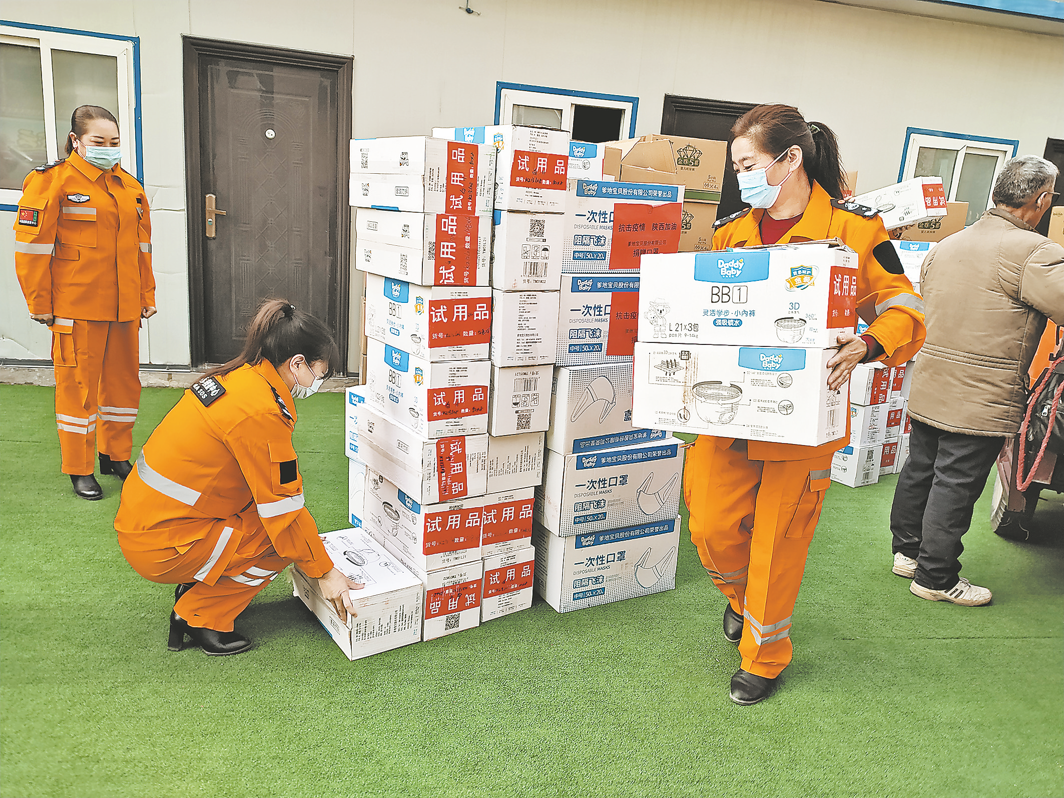 3月5日,在愛心人士梁先生的牽線下,中國國際救援中心向商州區(qū)10所學校和3個社區(qū)捐贈12萬只一次性防疫口罩、3噸84消毒液等價值10多萬元的防疫物資。(記者 賈書章 攝)