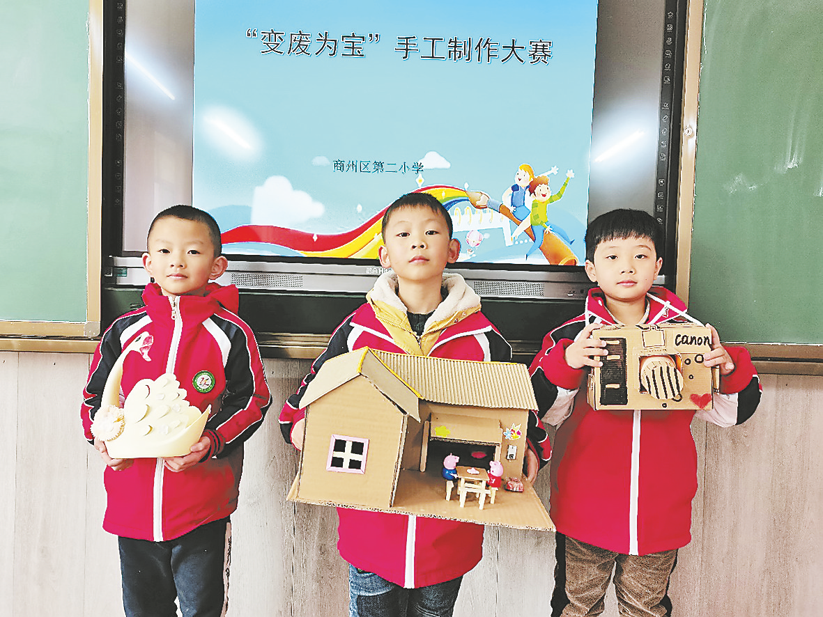 據(jù)了解,近幾年商州區(qū)第二小學通過主題班會、教師培訓會、家長會等形式宣傳教育垃圾分類的好處,在“變廢為寶”手工制作大賽中,學校所有美術組老師指導學生利用廢舊紙箱、飲料瓶、水管等廢棄物品制作相機、樓房、火箭、坦克、飛碟等手工作品,賽后將300多名學生的獲獎作品集中在學校展出。“我們向學生與家長發(fā)出垃圾分類倡議書,讓孩子把垃圾分類知識帶回家。”龍棟良說,每次活動的開展,都得到了全校學生的積極響應,不僅提高了他們的資源保護意識,還使他們從小養(yǎng)成勤儉節(jié)約、垃圾減量、低碳環(huán)保的行為習慣,形成“教育一個孩子、影響一個家庭、帶動一個社區(qū)、引領整個社會”的良好社會氛圍。