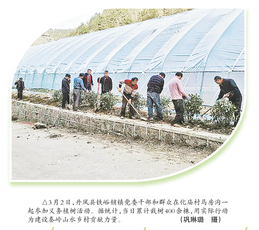3月8日,春日融融,新綠初綻。商南縣金絲峽鎮(zhèn)組織全鎮(zhèn)干部職工和各村黨支部書(shū)記在二郎廟村集中開(kāi)展義務(wù)植樹(shù)活動(dòng),當(dāng)天共栽植優(yōu)質(zhì)果樹(shù)500棵、楊樹(shù)苗3000棵,活動(dòng)將持續(xù)到12日。