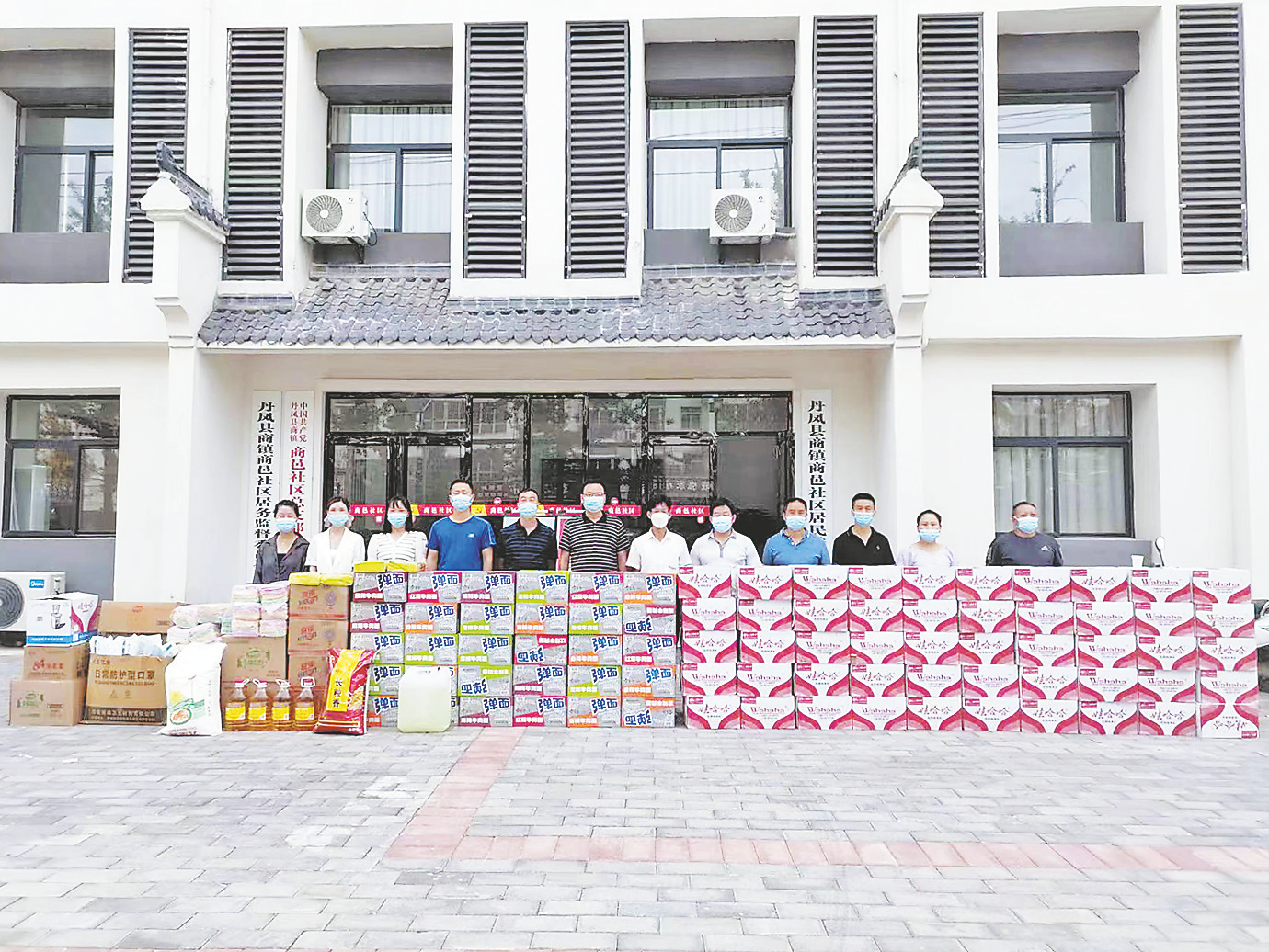▽面對(duì)當(dāng)前疫情防控的嚴(yán)峻形勢(shì),丹鳳縣招商服務(wù)中心向商邑社區(qū)捐贈(zèng)醫(yī)用一次性口罩300包、84消毒液30瓶、娃哈哈礦泉水50箱、康師傅方便面30箱、舒膚佳香皂120塊、奇強(qiáng)洗潔精120瓶等價(jià)值8000多元的防疫生活物資,把黨的關(guān)懷和溫暖送到疫情防控一線。