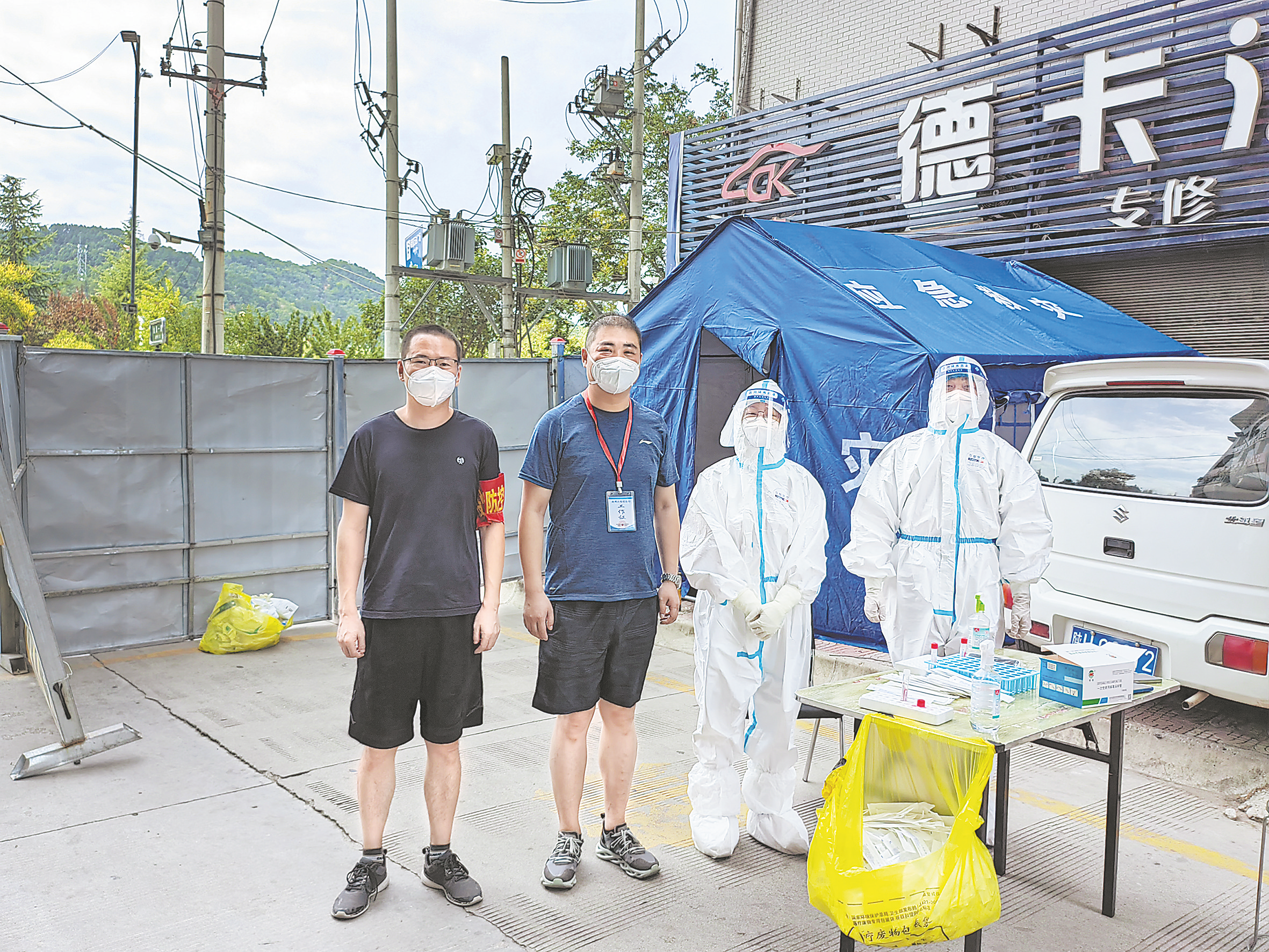 8月20日5時(shí)30分,席裕和“戰(zhàn)友”便已到崗,為6時(shí)的核酸檢測(cè)做準(zhǔn)備??吹脚抨?duì)做核酸檢測(cè)的人不多時(shí),他便及時(shí)通知居民下樓做核酸,并隨時(shí)替換“戰(zhàn)友”采集人員信息。