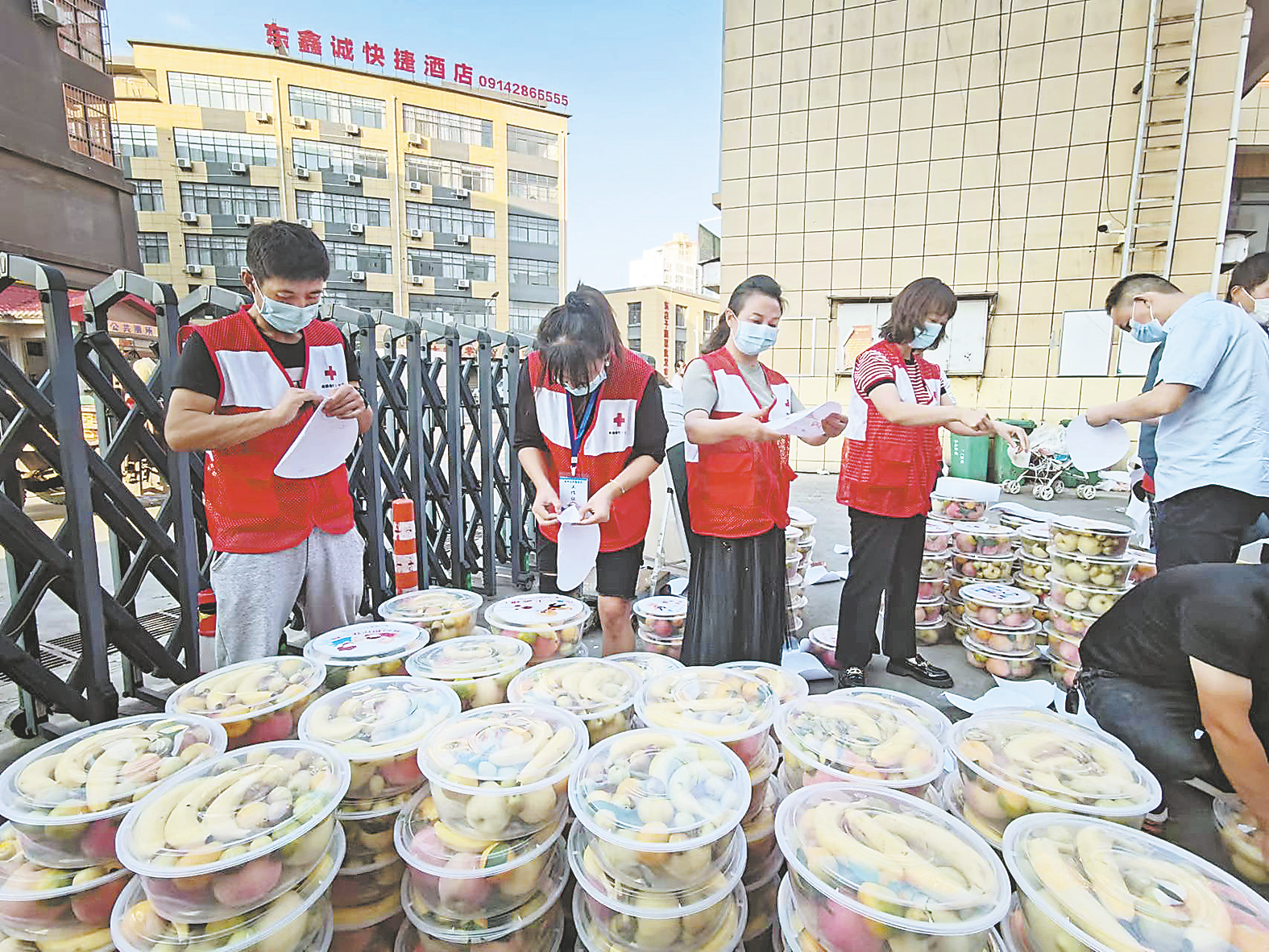 了解到被隔離學(xué)生的生活需求后,市紅十字會(huì)第一時(shí)間聯(lián)系采買,迅速召集紅十字志愿者打包、裝車、運(yùn)送物資,共向三個(gè)隔離點(diǎn)的1262名學(xué)生和幼兒送去價(jià)值約12萬(wàn)元的新鮮水果、酸奶及蛋糕點(diǎn)心等物資。