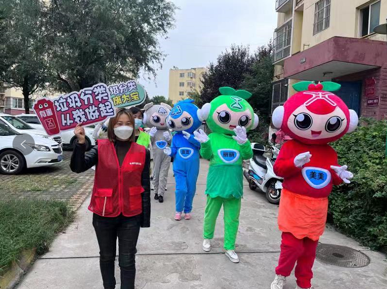 同時,活動中積極推廣應(yīng)用我市生活垃圾分類宣傳LOGO標(biāo)志和卡通形象。以商洛市生活垃圾分類卡通形象-環(huán)保小衛(wèi)士“美美、麗麗、藍藍、天天”為原型制作的四個可愛靈動的卡通布偶吸引了眾多居民圍觀。一些小朋友積極、踴躍參與,手舉垃圾分類宣傳牌和志愿者們一同開展宣傳。