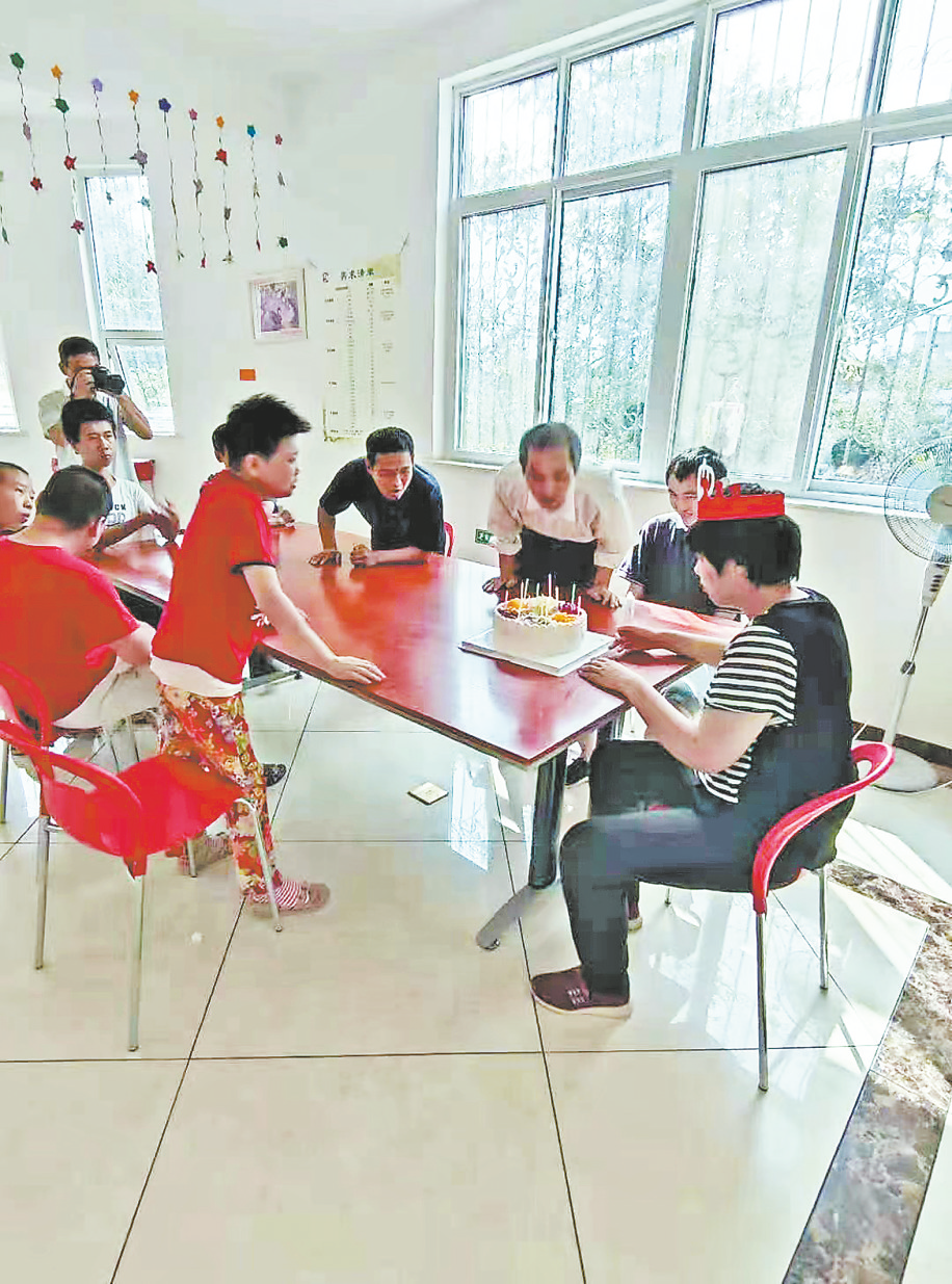 “娃們”因為智力殘障,很多還伴隨著癲癇的風(fēng)險。服務(wù)中心的工作人員以一當(dāng)二,解決人員短缺問題的同時,也學(xué)習(xí)基本的醫(yī)療等知識,全心全力照顧“娃們”,與“娃們”建立起了極為深厚的感情。這里的“娃們”有小組活動,學(xué)習(xí)看圖認(rèn)字、簡單計算、安全防護(hù)等基本的生活技能;有外出活動,如在馬路上學(xué)習(xí)辨認(rèn)紅綠燈等;有節(jié)日里的聯(lián)歡活動以及各類拓展活動,比如去丹鳳棣花等地舉辦夏令營等;有屬于“娃們”的成人禮,即在年滿18周歲的當(dāng)天,為“娃”穿上正規(guī)的禮服,教“娃”進(jìn)行宣誓,牢記未來作為成年人應(yīng)該擔(dān)當(dāng)?shù)呢?zé)任等。