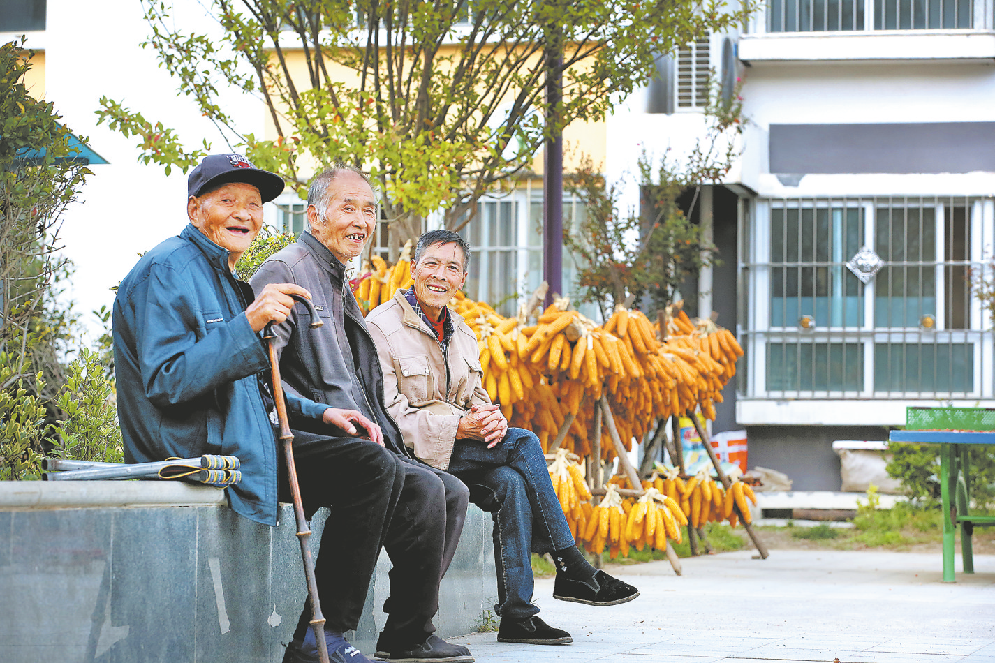 ?移民搬遷讓農(nóng)村生活更加幸福。圖為商州區(qū)燈塔村移民搬遷小區(qū)內(nèi)廣場上悠閑聊天的住戶。
